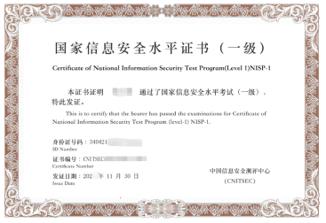 日前,我校信息学部共34人通过国家信息安全水平考试,获得NISP一级证书。