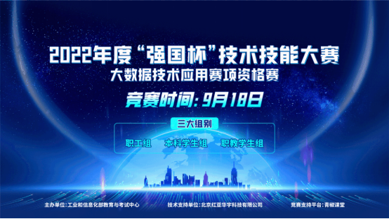 由工业和信息化部教育与考试中心主办,北京红亚华宇科技有限公司承办的2022年度“强国杯”技术技能大赛——大数据技术应用赛项资格赛已于2022年9月18日举行