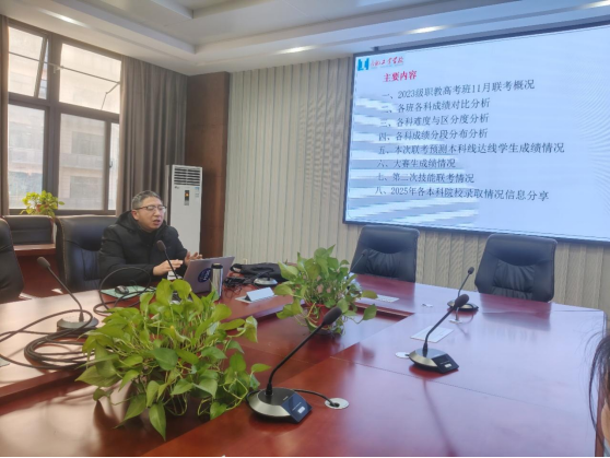 为深入剖析职教高考班教学成果,精准优化备考策略,进一步提升教育教学质量,12月17日,信息技术学部召开23职教高考教师会议暨联考成绩分析会。学部副主任罗璇主持会议,全体高三年级教师参会,共同聚焦数据、研判问题、共谋对策。