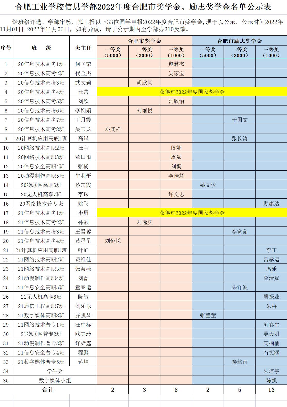 上一条:关于信息学部2022年秋季校内资助受助学生名单的公示 下一条:合肥工业学校信息技术学部 2021-2022年中等职业教育国家奖学金拟上报名单公示