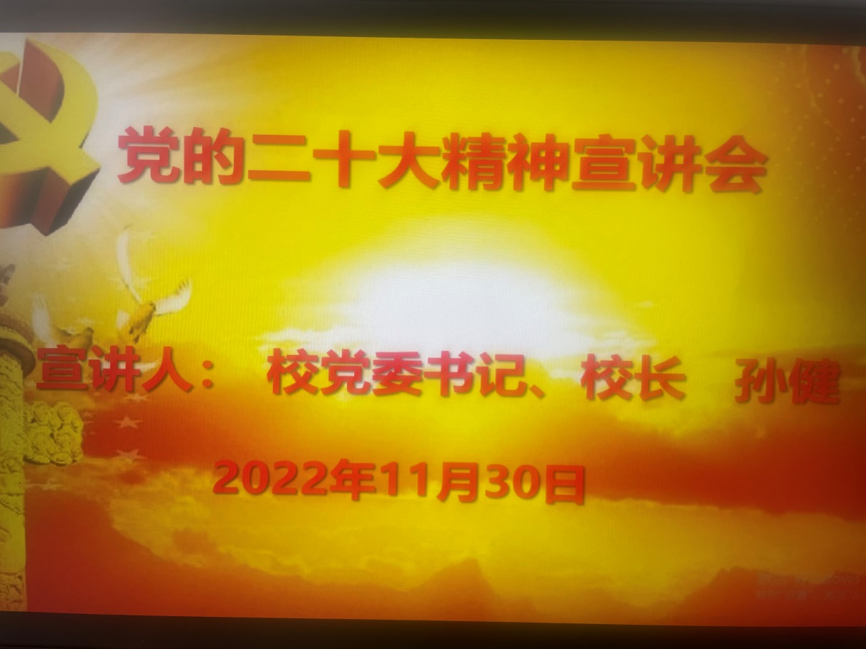 11月30日下午15点30分,中共合肥工业学校委员会第七支部召开党的二十大精神宣讲会,支部邀请校党委书记、校长孙健作为本次会议的主要宣讲人,参会的有支部全体党员、教研组长、大赛指导老师、青年教工团员等,会议由支部书记聊宗龙主持。