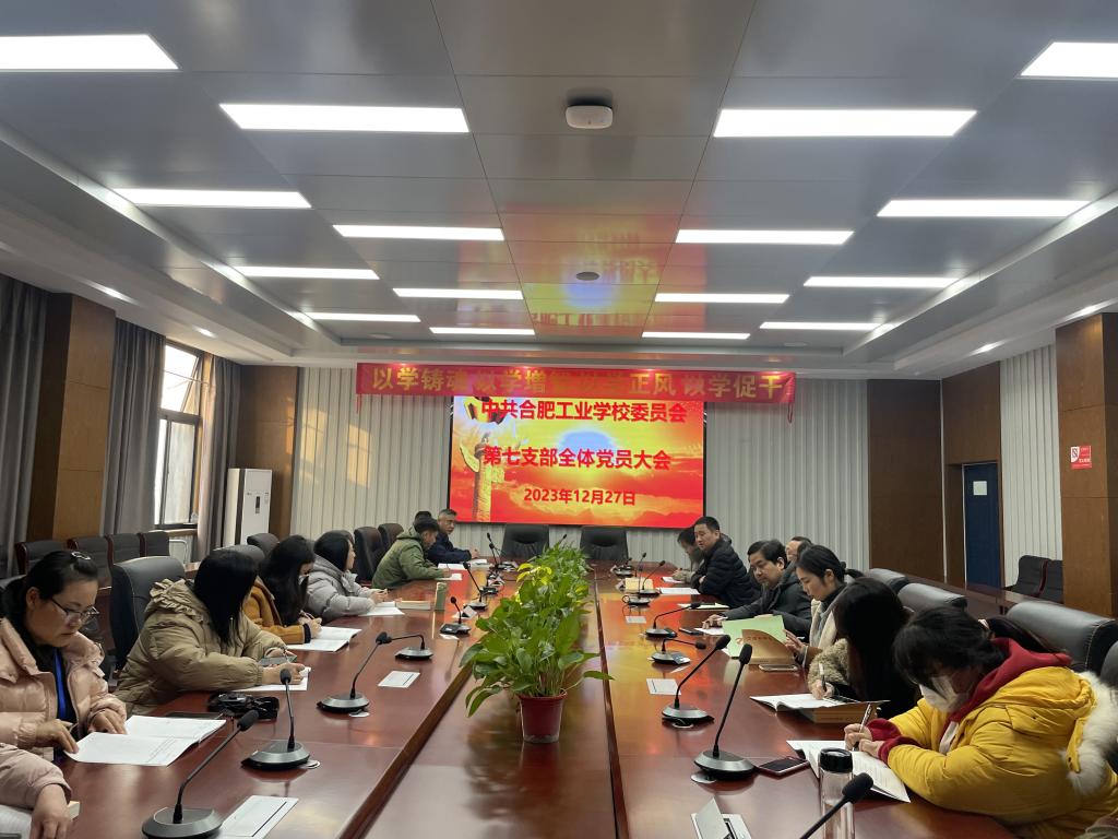 2023年12月27日下午15点40分,中共合肥工业学校第七支部在学部308党员活动室召开全体党员大会,支部全体党员参加本次会议,会议由支部书记聊宗龙主持。