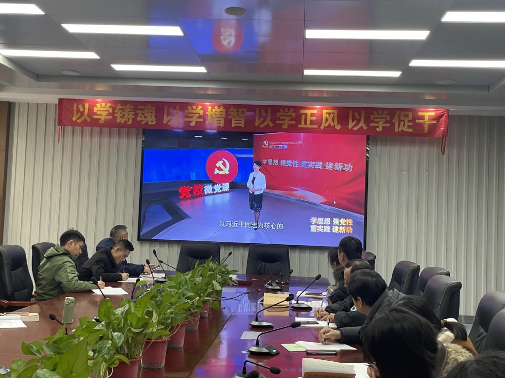 全体党员观看“学思想 强党性 重实践 建新功”党校微党课,学思想,把学习成效体现到提高理论素养上,思想是行动的先导;强党性,把学习成效提现到淬炼忠诚品格上;重实践,把学习成效提现到解决实际问题上;建新功,把学习成效提现到推动事业高质量发展上。
