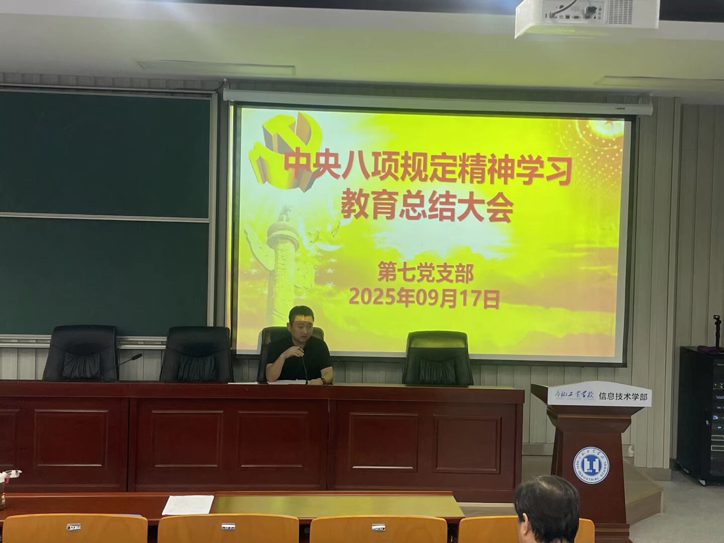 2025年9月17日,中共合肥工业学校第七支部召开深入贯彻中央八项规定精神教育总结大会,全面回顾总结教育活动开展情况,对巩固拓展教育成果、推动作风建设常态化长效化进行安排部署。支部全体党员参加了此次会议。