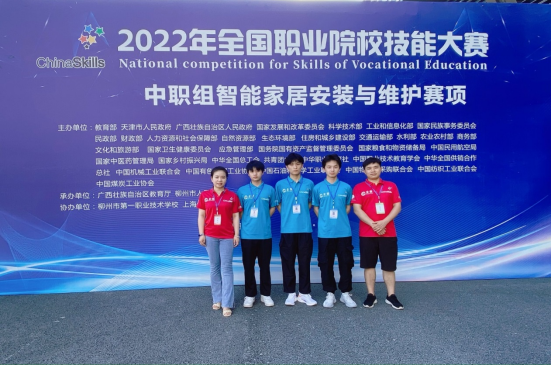 2022年87日至8月9日,全国职业院校技能大赛中职组智能家居安装与维护赛项经柳州市第一职业技术学校承办,在柳州国际会展中心隆重开赛!来自全国32个省、自治区、市的54所学校,共282名参赛代表队选手、领队、指导老师陆续通过火车、飞机等交通方式齐聚柳州,共赴比赛。   在指导教师罗璇、罗育杰的带领下,合肥工业学校代表队王民涛、赵雨龙、赵世骏三位选手在经过长达8小时竞赛的激烈角逐后,最终取得三等奖的好成绩。     智能家居安装与维护全国赛项试题共分为任务书一、任务书二两大模块;分别要求选手熟练掌握,并能够自由设计项目施工硬件设备选型配置方案、项目施工硬件系统图、项目施工硬件设备经济预算、项目施工平面点位及弱电图部署、项目施工设计实施方案、项目施工软件数据库分析、项目施工高保真原型图设计、项目施工软件功能设计、软件产品信息编码、硬件设备安装、网关和嵌入式箱编写烧录等多方面的综合性能力。在这历时一天的紧张高强度竞赛中,选手们不惧困难,以坚韧的精神毅力展现出大国工匠般的状态风貌和职业素养,以及全面性、综合性的技术水平和职业能力。三位选手在暑假期间依旧坚持留校、克服苦难、废寝忘食,做到赛训合一每天严格按照国赛赛项规程时间训练。同时罗璇、罗育杰老师暑期在校对选手的关怀和慰问也给予了选手们莫大的鼓励,更加坚定了选手的自信心和拼搏力。“大赛点亮人生,技能改变命运”这句标语既是大家对大赛的初印象,亦是每位职业教育学子的力量来源,多年来,一批又一批学子通过大赛平台成就了不一样的人生。他们的成长故事激励着后来者,将大赛精神薪火相传。通过比赛,将进一步深化职教改革,提升职业教育在服务地方经济社会发展的动能,培养更多高素质技术技能人才、能工巧匠、大国工匠。