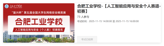 同日,由国家网络空间安全人才培养基地主办、CIPS之家承办的第五届“复兴杯”全国大学生网络安全精英赛初赛圆满收官。我校创下参赛规模与竞技成绩双重新高,152名学子报名三个赛道,30人成功晋级复赛,整体晋级率达 19.7% 。