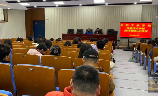 3月21日下午3点40分信息技术学部在二楼阶梯教室召开2021-2022学年第二学期全体教职工大会,会议由聊宗龙主任主持,全体教职工参会,孙健校长出席本次会议。