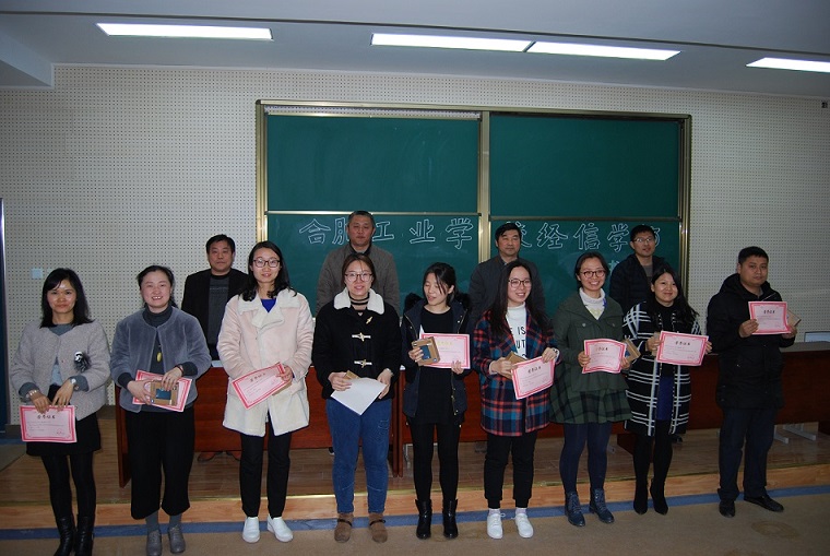 2017年3月22日下午3:30,合肥工业学校首届信息化课堂教学大赛经信学部获奖教师颁奖仪式在经信学部二楼会议室举行。经信学部共有三十位教师参加了本次信息化课堂教学比赛,其中蒋勤凤等9名教师分获一、二、三等奖,会上由教学负责人杨志国宣读信息化课堂教学大赛评选结果,学部部长陆应柱、教学负责人杨志国、实训负责人李国辉、总务负责人饶春分别为获奖教师颁发荣誉证书和奖品。陆应柱部长首先肯定各位教师在此次比赛中取得的优异成绩,同时要求所有教师以本次比赛为契机,利用信息化手段,提高自身的教育教学水平。