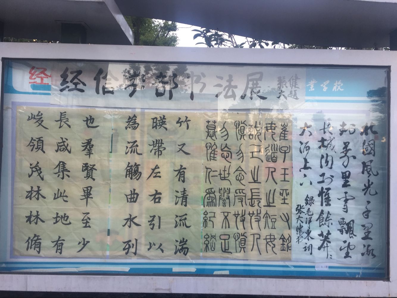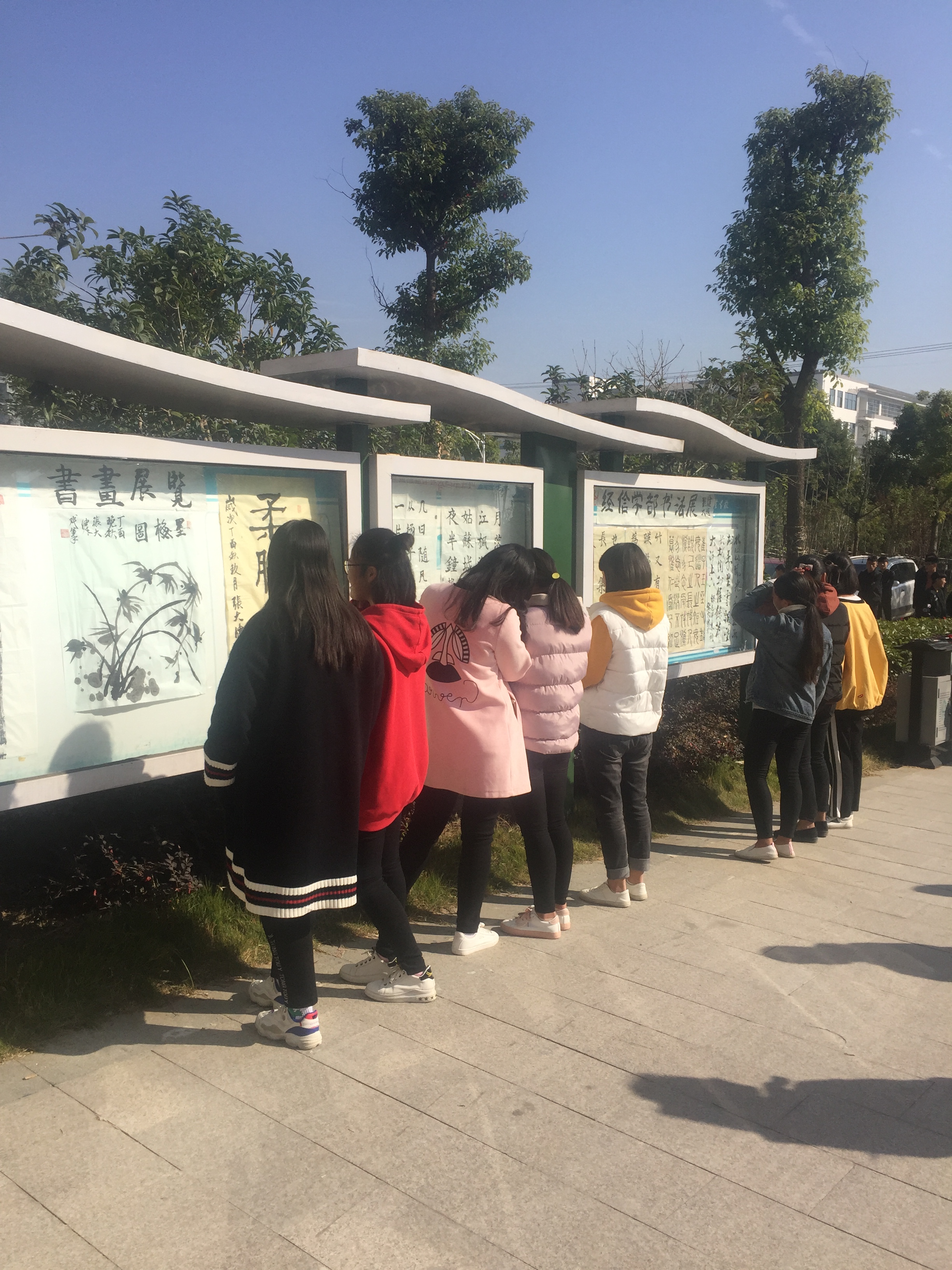 2017年10月31日下午15点30,合肥工业学校经信学部在学部东门开展学生书法作品展览活动,本次活动共两部分:书法展和书画展,为学部文化再添美丽色彩。
