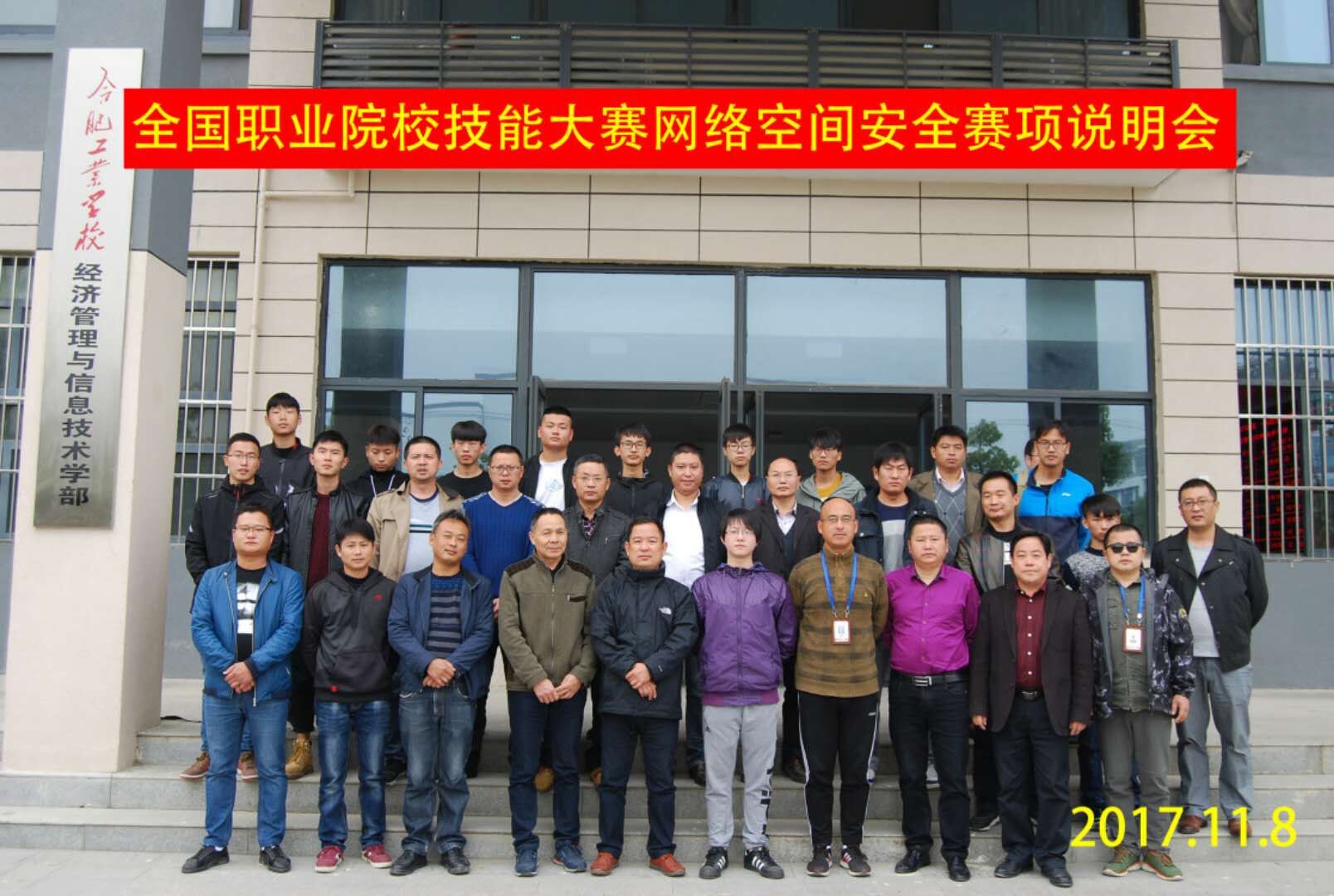 2017年11月8日,2018年《网络空间安全》国赛项目说明会在我校举办,全省共计十六所中职学校的三十多名师生来我校参加了为期三天的说明会。