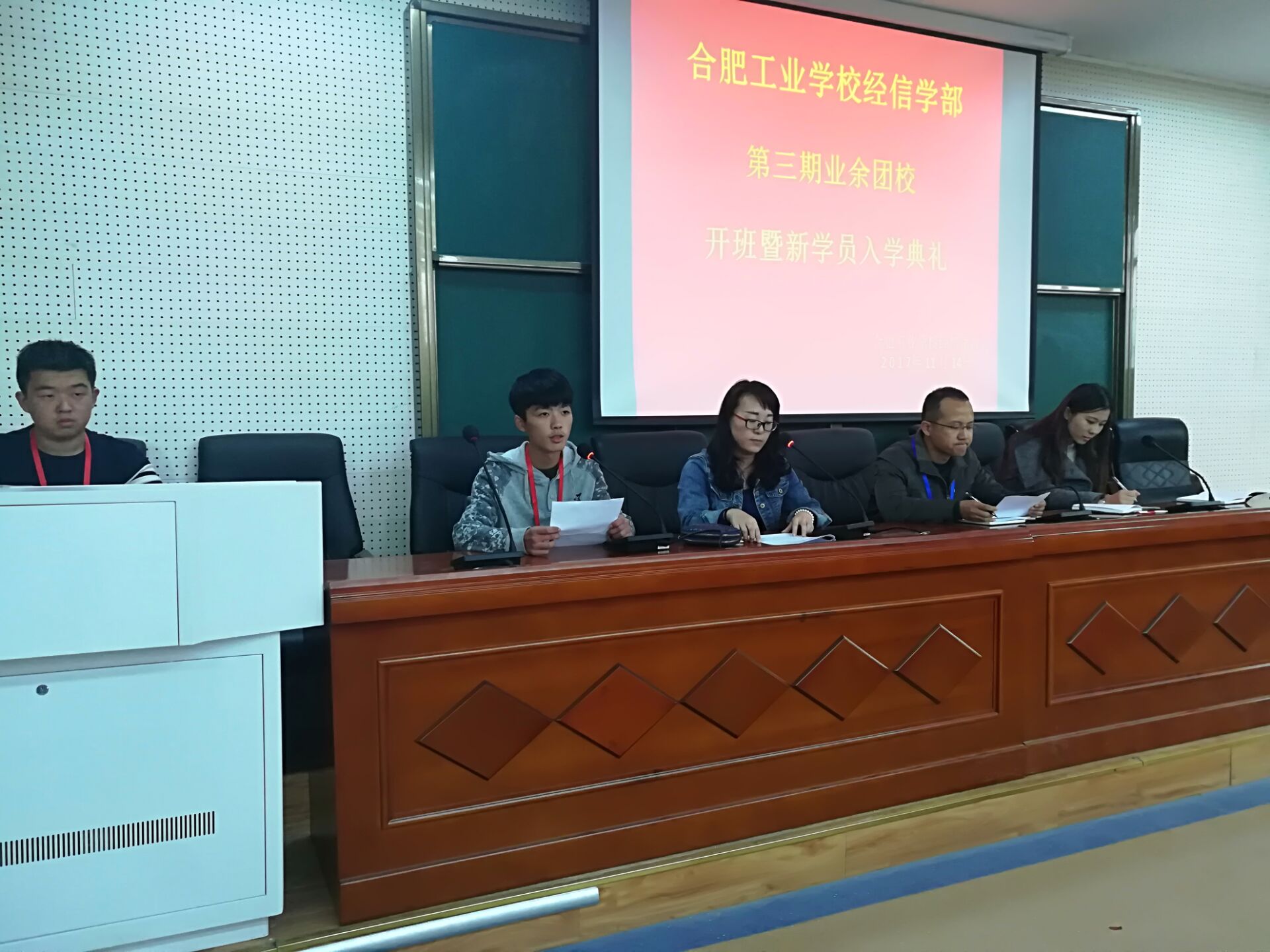 11月14日下午,合肥工业学校经信学部二楼阶梯教室青春激昂、掌声振振,学部第三期团校开班典礼在这里圆满落幕。参加此次开班典礼的人员有:团委负责人黎扬同志,团委靳诗萌、司贺娟两位老师。典礼由王月霞老师主持。