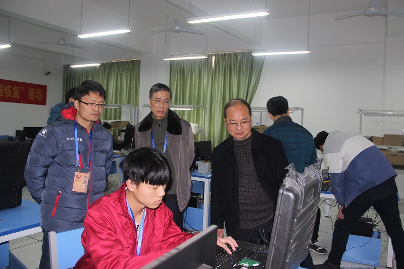 比赛当天,合肥市教育局职成处处长姚健、副处长戈弋一行冒着小雨来到经信学部,在副校长孙健、学部主任杨志国、实训处处长周经春等陪同下观看了物联网技术应用与维护、智能家居安装与维护、计算机检测维修与数据恢复等项目的比赛,并与部分评委老师进行了交流。优美整洁的校园环境、热情周到的接待服务,为参赛选手创造了良好的竞赛环境,为各兄弟院校提供了相互学习、相互交流的平台,受到各参赛学校的一致好评。