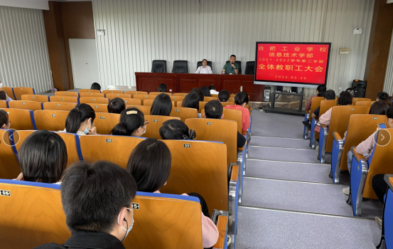 5月20日下午3点30分信息技术学部在二楼阶梯教室召开2021-2022学年第二学期全体教职工大会,会议由聊宗龙主任主持,全体教职工参会,校党委书记、校长孙健出席会议。