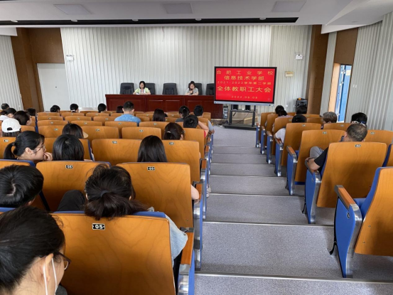 6月8日下午3点30分信息技术学部在二楼阶梯教室召开2021-2022学年第二学期全体教职工大会,会议由司贺娟副主任主持,全体教职工参会,校党委书记、校长孙健出席会议。