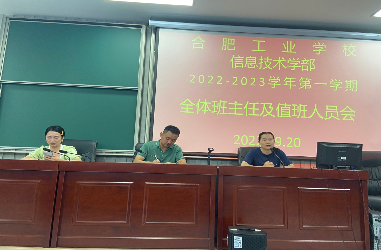 为进一步提升班级管理水平,增强班主任工作能力,夯实学部德育工作实效,9月20日下午两节课后在信息学部二楼阶梯教室召开全体班主任及值班人员工作会。会议由学部副主任司贺娟主持,学部主任聊宗龙及全体班主任参会。