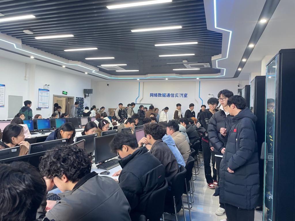 随后,范士领主任作为专业领路人,带领师生参观了信息学院各大实训机房。从网络安全模拟实验室到数据运维实训中心,范教授围绕网络安全专业的课程设置、实训设备及行业应用场景展开讲解,现场演示了网络攻防、数据防护等实操项目,生动的案例与专业的解析,让同学们对信息技术领域的职业方向有了更清晰的认知。