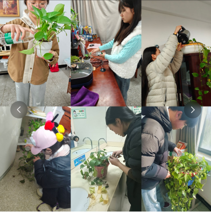 大家分组走进学部教师办公室,自带工具为办公室内的绿植浇水、修剪枯黄枝叶、擦拭叶片,打理花盆周边杂物,让办公环境更清新整洁,用朴实的劳动表达对老师们的敬意,获得老师们的一致好评。