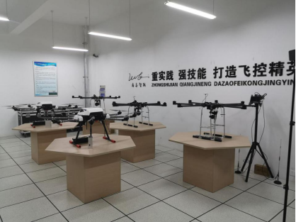 专业建有无人机模拟飞行实训室、无人机应用创新工作室、无人机室内飞场实训室、无人机室外飞场,具备开展无人机专业各学科教学的硬件基础。专业配备飞行虚拟设备),利用VR仿真技术实现虚拟空间中的无人机实操教学和训练,为实际飞行打下基础。专业配备轴距在1.5m以上4轴、6轴和8轴大型多旋翼无人机11架,FPV无人机竞速赛事专用无人机6架,组装维护无人机25架,固定翼无人机4架、无人直升机2架。