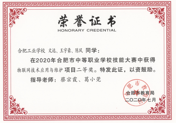 本专业共参与职业院校技能大赛项目两项,物联网技术应用及维护项目及智能家居项目,物联网技术应用及维护取得省级二等奖,智能家居获国赛二等奖。