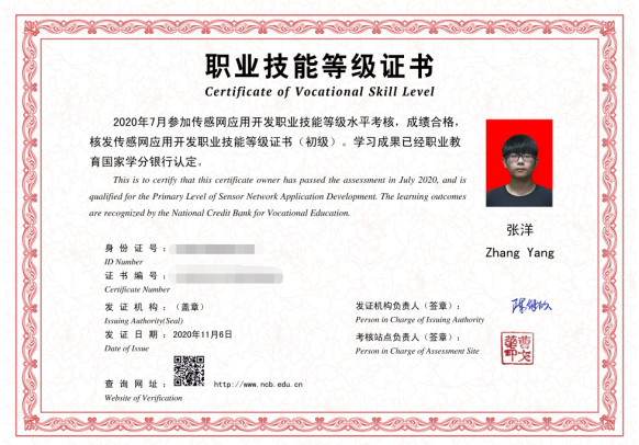 申报了全国首批1+X证书传感网应用开发项目考证,通过率达95%以上。