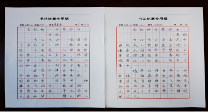 本次大赛吸引了学部各年级学生的广泛参与,各班的参赛选手,纷纷执笔,以墨为媒,以纸为介,共同演绎了一场关于汉字之美的精彩对话。比赛现场,一幅幅作品或遒劲有力,展现出不凡的书法功底;或温婉细腻,透露出书写者内心的柔情与雅致。参赛者们凝神静气,一笔一划间尽显对汉字的敬畏与热爱,整个赛场弥漫着浓厚的文化气息。
