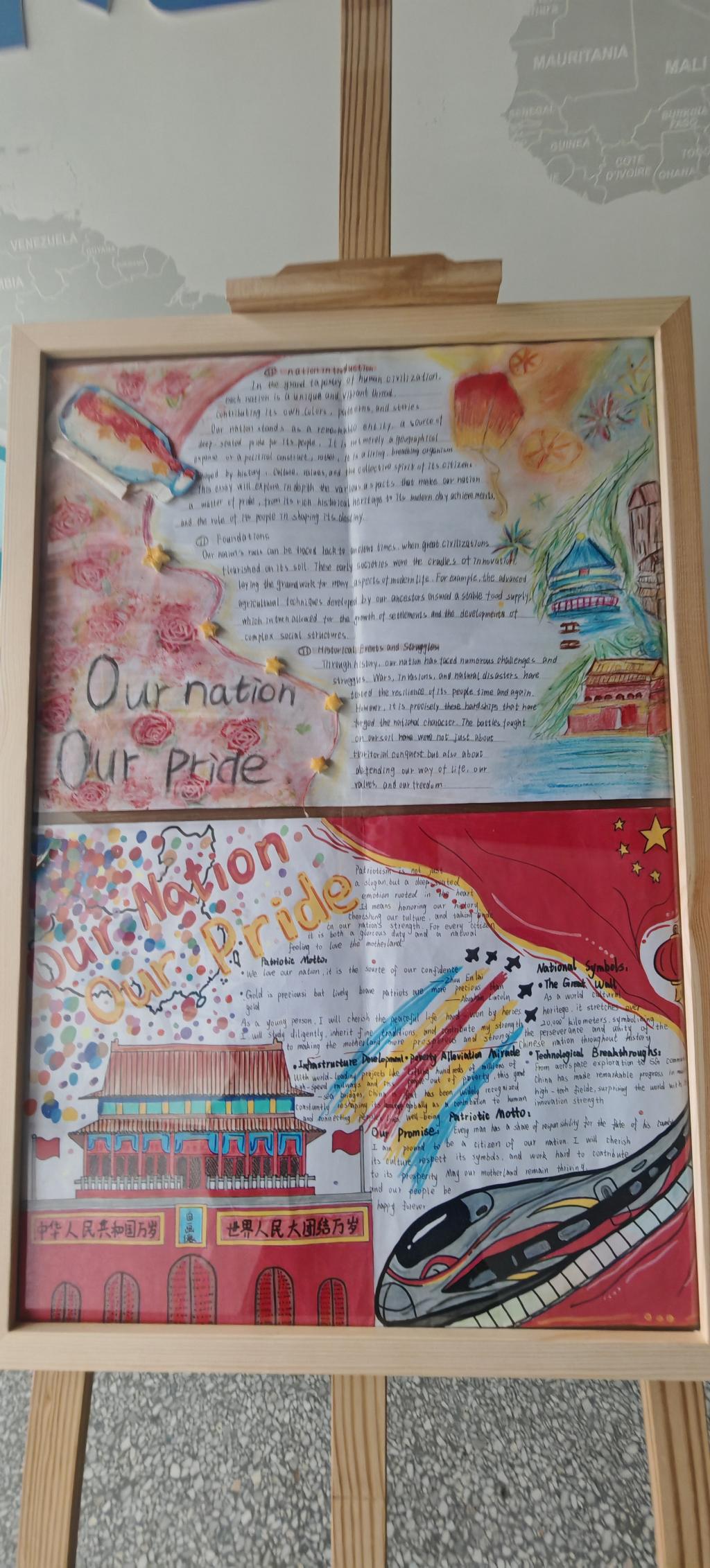 为激发学生的英语学习热情,深化学生对国家发展与民族精神的认知,近日,信息学部英语组以Our Nation,Our Pride”为主题,组织开展英文手抄报创作活动,为同学们搭建了一个用英语抒发爱国情怀的实践平台。