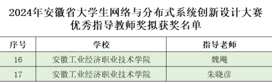 近日,我校携手安徽工业经济职业技术学院,在2024年安徽大学生网络与分布式系统创新设计大赛和物联网应用创新大赛中取得了令人瞩目的成绩。在大数据应用、龙架构容器云技术与应用、区块链技术应用、网络漏洞挖掘与防范、工业互联网五个赛道中,我校33名学生参赛共获得1个一等奖、5个二等奖和5个三等奖,优秀指导教师1名