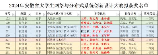 3+2网安学生在安徽工业经济职业技术学院取得的部分成绩