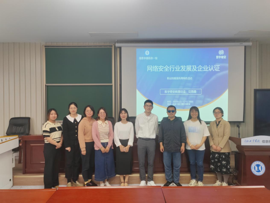 为了帮助学生更全面地认识了解自己的专业,对自己的未来职业有更明确的规划,5月11日下午,合肥工业学校邀请了校企合作单位合肥数字奇安网络信息科技有限公司教育总监花雨晨来校开展讲座。讲座由信息技术学部网络安全专业带头人魏飚老师主持,信息技术学部副主任罗璇、信息一组全体教师、网络安全专业的学生们,以及合肥数字奇安网络信息科技有限公司行政总监张丽伟出席本次讲座。