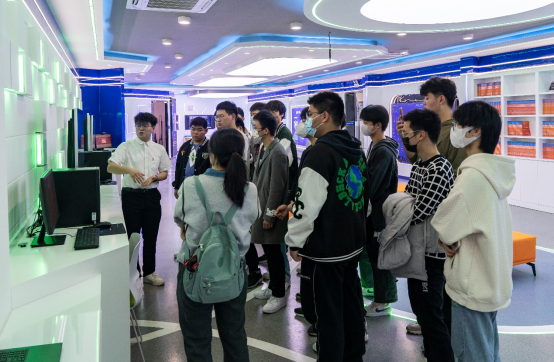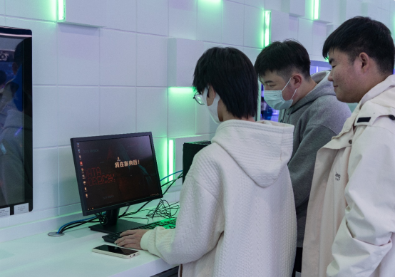 在工作人员的带领下,师生一行首先参观了奇安信安全产业学院、青少年科普教育基地网络安全科普馆。学生在科普馆的各个展台,听讲解人员介绍,亲自操作设备,体验了平时只能在课本和视频上见到的安全事件,理解了网络安全事件发生的机理,见识了网络安全造成的影响,认识了网络安全的重要性。这一堂生动的体验课让同学们流连忘返。