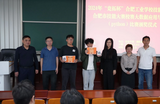 随后,讲座嘉宾们为2024年“竞拓杯”合肥工业学校技能大赛暨合肥市技能大赛校赛大数据应用与服务(python)比赛的获奖学生颁发了奖状和奖品。