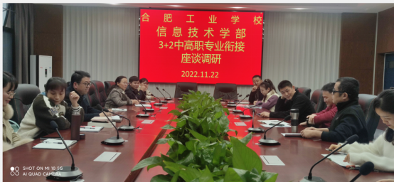2022年11月23日信息学部开展了3+2中高职专业衔接座谈调研,出席会议的有教研室主任李风华,学部主任聊宗龙,副主任罗璇,学部各教研组长、专业负责人以及专业教师代表。