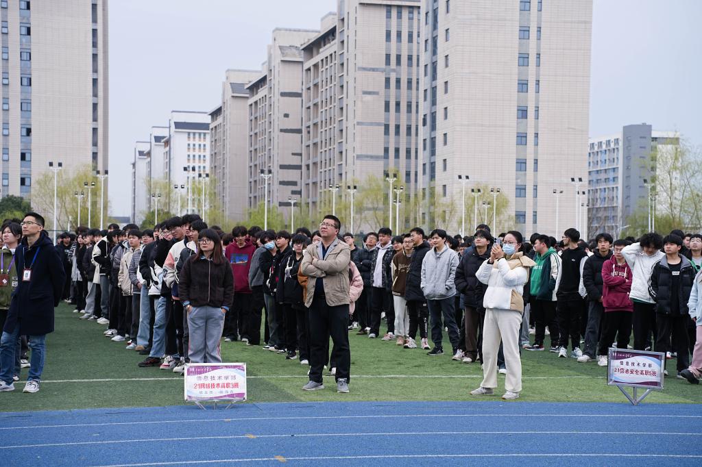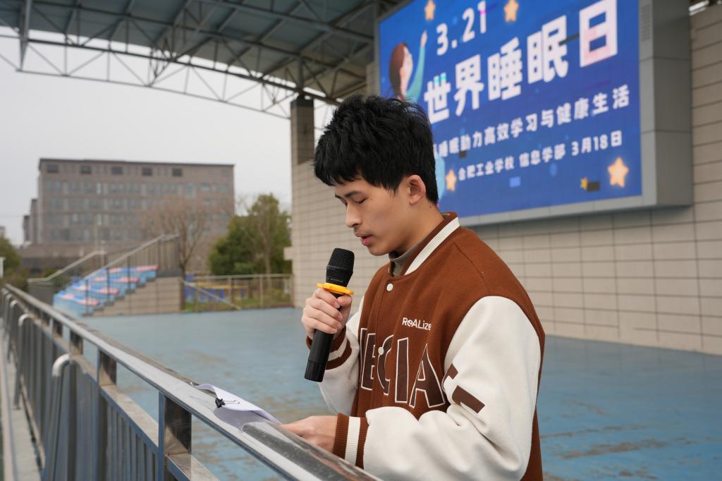 2024年3月18日,合肥工业学校信息学部全体师生集聚操场,举行以主题为“世界睡眠日”的升旗仪式。