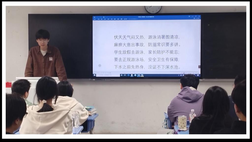 近年来,溺水事故频发,尤其在夏季游泳高峰期,中小学生作为活泼好动的年龄群体,防溺水意识相对薄弱。然而溺水身亡已成为中小学生非正常死亡的“头号杀手”。为了提高学生的防溺水意识,减少溺水事件的发生,信息学部23高职8班在学校及学部领导下,开展了4月份一月一主题活动——“珍爱生命,预防溺水”。活动的主要目的包括普及防溺水知识、提升学生自救互救能力、以及加强家校合作共同构建安全防护网。