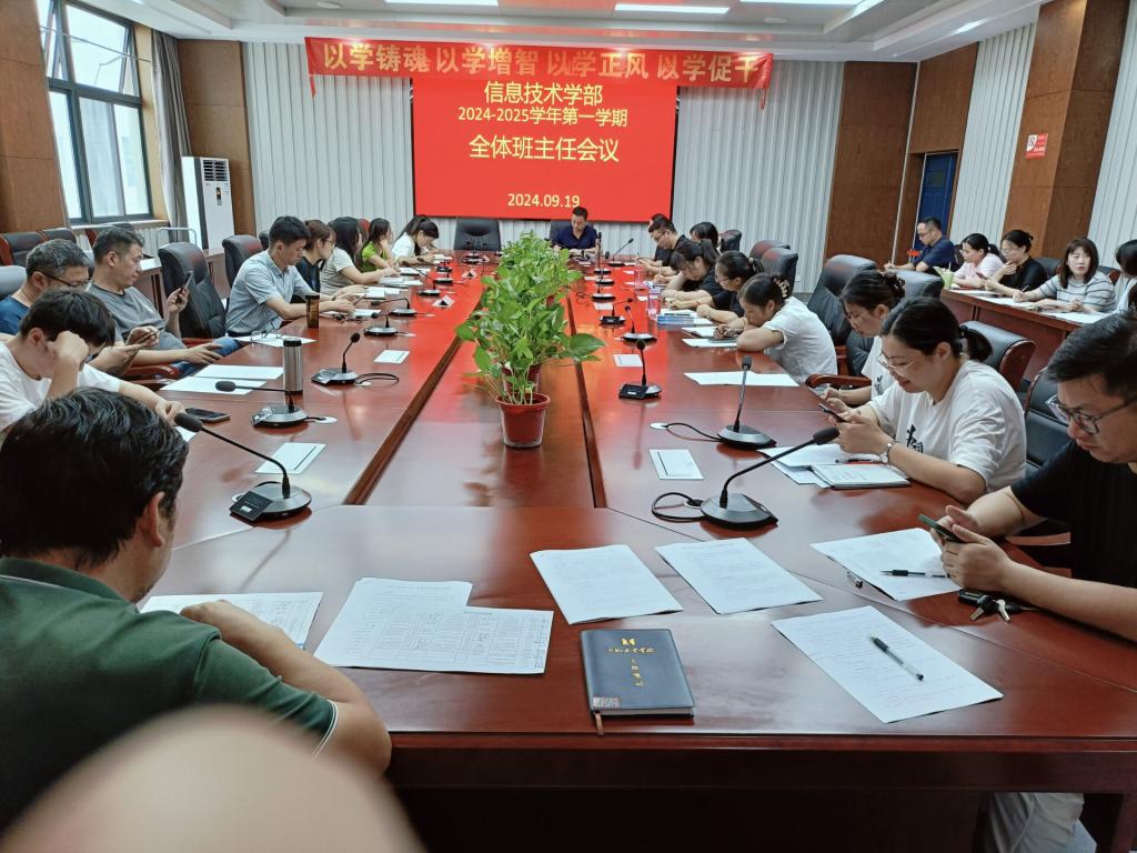 2024年9月19日,信息学部召开全体班主任会议。本次会议旨在分享班主任工作经验,提升班级管理水平,推动学部教学管理工作的发展。