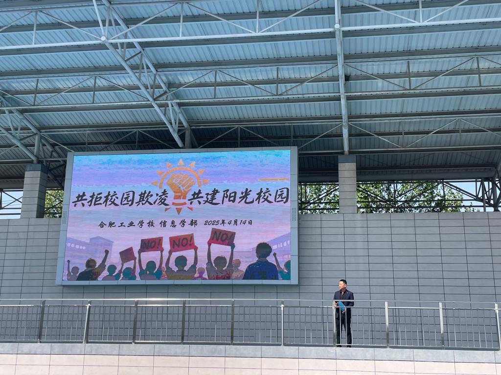 23高职7班学生代表刘思锴上台发言,以“拒绝欺凌,做温暖守护者”为主题,呼吁同学们从自身做起:“面对欺凌,沉默即是纵容;面对受困者,援手即是光芒。我们要学会尊重差异、换位思考,让每一个同学都能在校园里感受到平等与关爱。”他的发言引发全场共鸣,掌声此起彼伏。