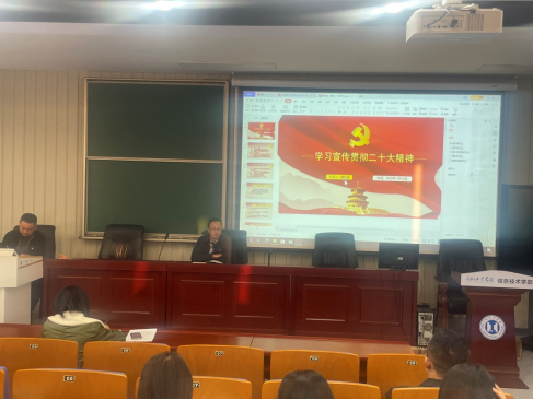 2022年11月16日中共合肥工业学校第七支部在学部二楼阶梯教室召开主题党日活动,本次活动由支部书记聊宗龙主持,参加本次活动的有全体党员、全体团支部书记,同时邀请了民主党派人士、青年团员教师参加了本次会议。首先支委司贺娟宣读第七党支部十一月份的学习计划;接着,支部书记聊宗龙面向全体党员宣讲贯彻党的二十大精神,上了一堂别开生面的党课,带领全体党员更深入的学习了二十大报告主要内容。校党委书记孙健以普通党员...