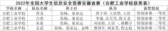 2022年11月27日,合肥工业学校在2022年全国大学生信息安全竞赛安徽省赛网络攻防赛道中获得一个一等奖,两个二等奖,一个三等奖。合肥工业学校已连续四年特邀参加安徽省大学生(高职组)网络安全赛项,均取得优异成绩。竞赛主办为安徽省教育厅,承办单位为合肥工业大学、合肥学院、铜陵学院、合肥职业技术学院、安徽邮电职业技术学院。网络攻防赛道采用线上网络初赛和决赛方式。高职组决赛共有24所学校的93支队伍。竞赛内容涵盖网...