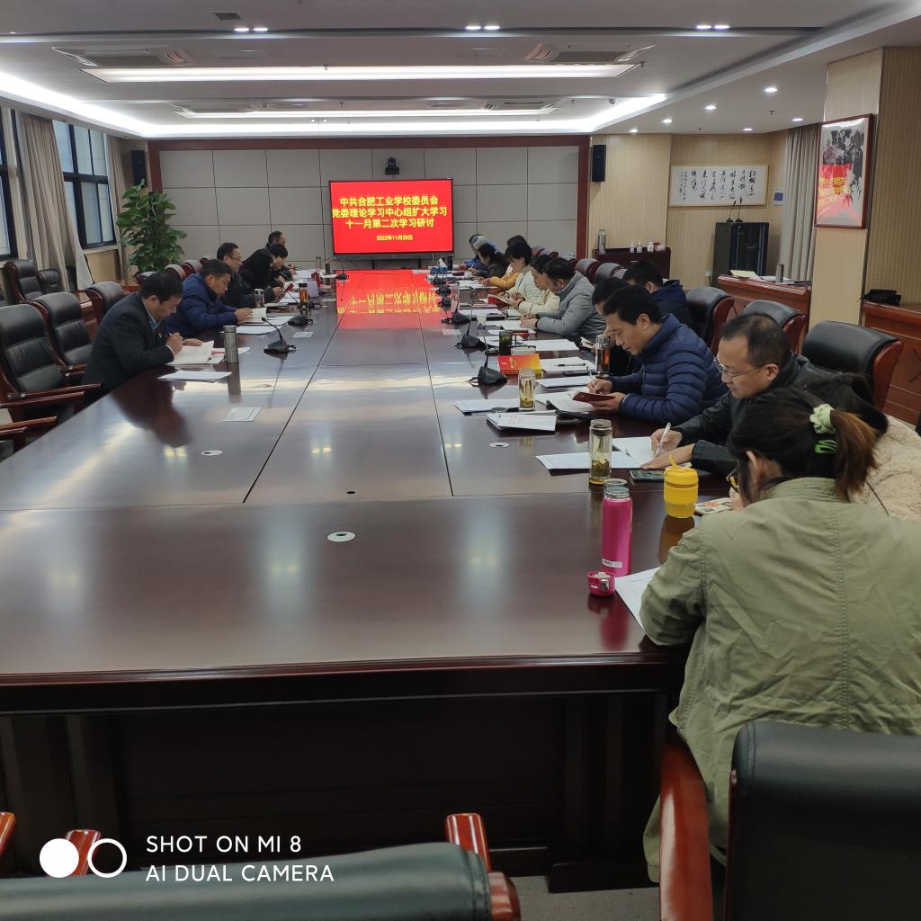 11月29日下午2:00,校党委理论学习中心组(扩大)在科研楼九楼会议室召开学习交流研讨会,会议由校党委书记、校长孙健主持,学校党委理论学习中心组成员、副校级以上干部、各支部书记(含退休支部)、各部门主要负责人出席。会上书面学习《合肥工业学校学习宣传贯彻党的二十大精神工作方案》《合肥工业学校党委学习宣传贯彻党的二十大精神宣讲工作方案》及中国共产党第二十届中央委员会第一次全体会议公报。校党委委员、副校长...