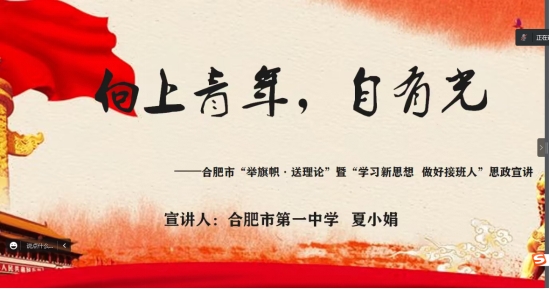 12月22日晚19:00,合肥市宣讲团定点我校的合肥市“举旗帜送理论暨学习新思想做好接班人”思政宣讲活动通过腾讯会议顺利开展。安徽省委讲师团专家库青年宣讲名师夏小娟老师为我校优秀团员们献上了一堂生动难忘的“思想政治课”。党的二十大是一次高举旗帜、凝聚力量、团结奋进的大会,为新时代新征程党和国家事业发展、实现第二个百年奋斗目标指明了前进方向、确立了行动指南。认真学习宣传贯彻党的二十大精神,事关党和国家事业...