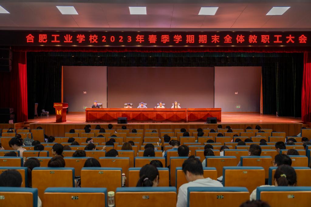 7月7日上午,我校在图书楼三楼礼堂召开2023年春季学期期末全体教职工大会,回顾总结本学期工作,安排部署假期和新学期工作。校党委书记杨三龙,校党委委员、副校长谢丹、董云霞及全体教职工参加会议,大会由校党委委员、副校长张宗权主持。会上,建工学部、信息学部、工商学部、服饰学部、学生处、教务处相关负责人分别作交流发言,对本学期各自部门工作进行总结回顾,并汇报今后工作思路和努力方向。谢丹向全体教职工报告2022-...