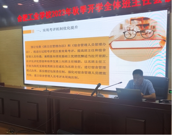 2023年8月25日下午,合肥工业学校在科技楼四楼会议室举行合肥工业学校2023年秋季开学全体班主任暨新生班主任会议,就开学工作进行动员和培训,确保新学期各项工作顺利开展。会议由学生处处长杨晓宁主持,党委委员、副校长张宗权到会并发言,法制副校长张东安受邀出席。会上,张宗权针对班主任管理的系列改革举措进行了详细解读,并强调了学生包保责任制的重要性。他指出,班主任是学校和学生之间的重要纽带,对学生的成长起到至...