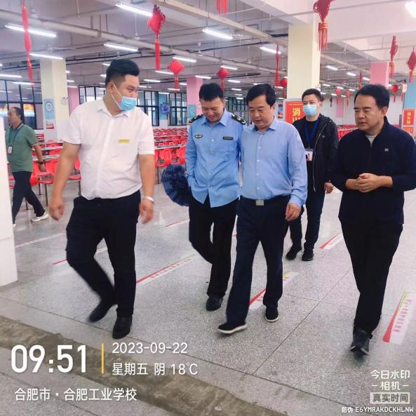 为进一步加强食品安全监管工作,强化食品安全保障,合肥市学校食堂包保督导组于2023年9月22日上午对合肥工业学校第一食堂、第二食堂进行督导检查。督导组组长陈勇副局长、张静处长和新站区食药所刘军所长及相关工作人员在校党委书记杨三龙和校食品总监张宗权、总务处处长蒋晓宏陪同下对食堂全面检查。本次督导检查主要是从完善安全管理体系、抓好常态化防控、强化应急处置、加强宣传和培训等四个方面进行检查。针对食堂的食品安...