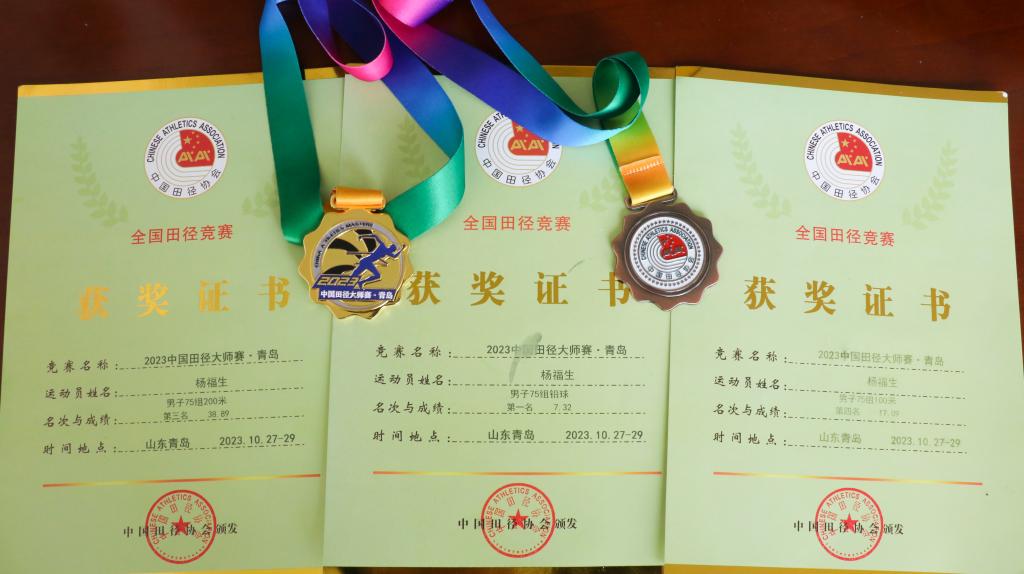 10月27日至29日,由中国田径协会主办的2023中国田径大师赛在青岛国信体育中心体育场举行。我校75岁的退休教师杨福生参赛并斩获铅球赛项金牌、200米铜牌、100米第四名的优异成绩,为学校增光添彩。人老不失戎马志,余热生辉耀九重。杨福生出生于1948年,原合肥建设学校体育老师,于2008年11月光荣退休,退休前一直从事体育教学工作。多年以来,他始终保持着对田径运动的热爱,醉心于体育事业几十年如一日,在全民健身运动、老人...
