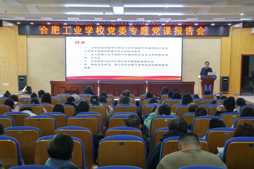 12月6日下午,合肥工业学校党委举办主题教育专题党课报告会。校党委书记杨三龙以“感悟思想伟力 积极担当作为 努力开创合肥工业学校高质量发展新局面”为题,面向全体党员讲授专题党课。报告会由校党委副书记、校长孙健主持,学校全体党员、中层及以上干部参与学习。党课上,杨三龙书记回顾了党的理论创新历史,结合工作实际和学习感悟,阐述了开展主题教育的重大意义和目标要求。他强调,开展主题教育,就是要教育引导党员、干...