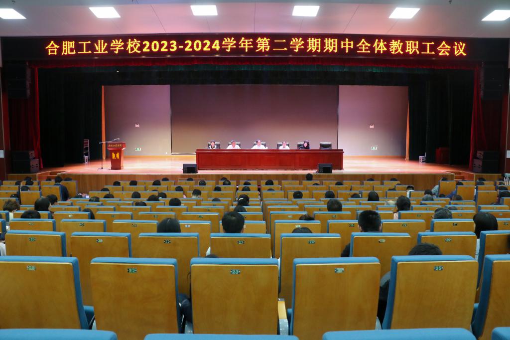 5月8日下午,我校在图书楼三楼礼堂召开2023-2024学年第二学期期中全体教职工会议,全面总结本学期开学以来的各项工作,安排部署下一阶段任务。校党委书记杨三龙,校党委副书记、校长孙健,校党委委员、副校长张宗权、谢丹、董云霞及全体教职工参加会议,张宗权副校长主持会议。勠力同心共回首,奋楫笃行向未来。会上,办公室、总务处、工商学部、合肥市“三八红旗集体”代表分别作了交流发言,汇报上半学期部门工作情况,提出今...