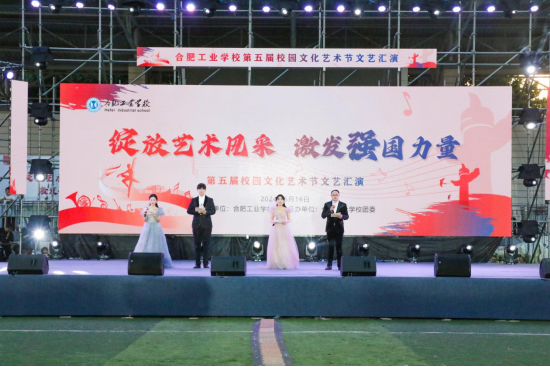 缤纷五月,竞绽芳华。5月16日晚,合肥工业学校田径场上灯光璀璨、群星闪耀,合肥工业学校第五届校园文化艺术节文艺汇演隆重举行!全校师生欢聚一堂,多才多艺的工业学子们载歌载舞,唱响时代旋律,舞动飞扬青春。本次文艺汇演以“绽放艺术风采 激发强国力量”为主题,总计21个节目,分为“强国有我汇力量”、“青春绽放显风采”、“凝心聚力谱新篇”三个篇章。节目汇集歌舞、武术、朗诵、情景剧、器乐演奏、无人机表演等多种艺...
