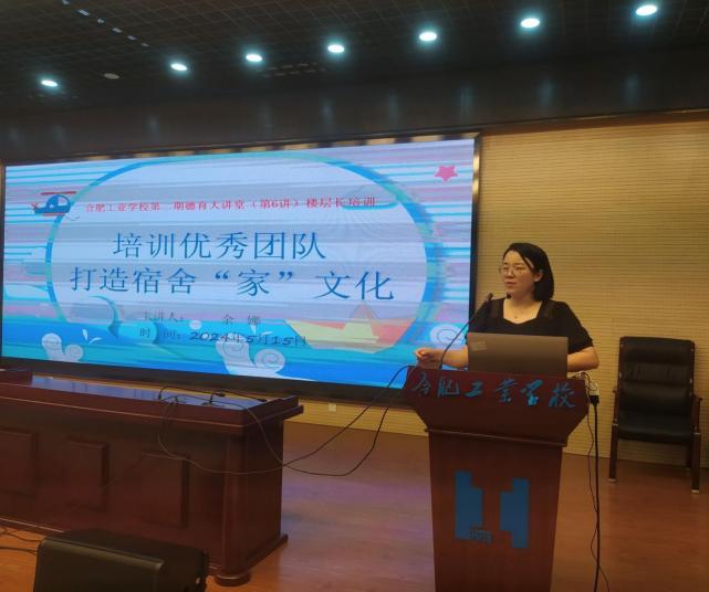 为进一步加强楼层长队伍建设,明确工作职责,增强工作意识,共创美好的学习生活环境,5月15日,合肥工业学校在图书楼四楼活动中心开展第二期德育大讲堂(第6讲)楼层长培训会,学生处、宿舍主管、各宿舍楼层长150余名参加了此次培训会议。学生处余娜老师细致讲解了本学期宿舍管理工作出现的一些亮点工作,分析了楼层长具体工作职责和干部的定位,并对各楼层长提出积极配合各项工作、合理科学处理突发事件、异常情况及时报告等要...