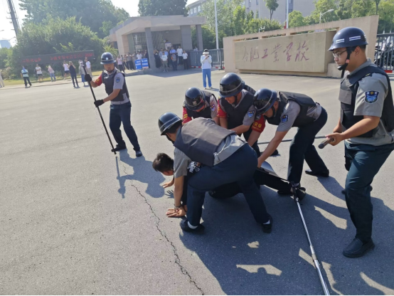为有效防范校园突发伤害事件发生,切实保障广大师生人身安全,增强防暴意识和应对能力,根据当前社会形势,5月23日上午,合肥工业学校安全保卫处联合高教基地派出所、中保恒杰保安公司在学校北门组织了一场紧张而有序的防暴演练。副校长张宗权,安全保卫处、学生处、各学部学生管理教师参加观摩。演练前,培训专员对保安队员进行反恐防暴宣传教育,并现场对各种防暴器材和一键报警的使用方法进行详细讲解。演练开始,由一名保安...