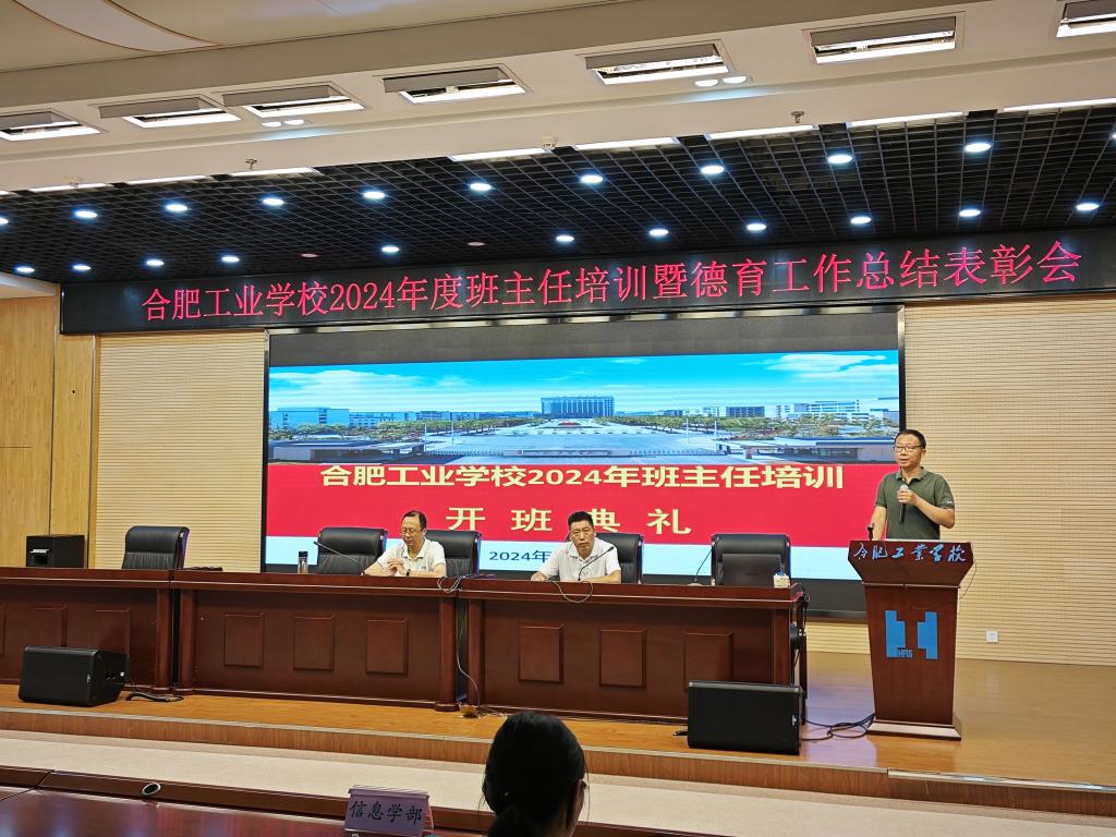 8月25日上午,合肥工业学校在图书馆四楼报告厅召开2024年度班主任培训开班仪式。校党委副书记、校长孙健,校党委委员、副校长张宗权出席会议,全体班主任、各学部学管主任、学管老师、宿舍主管参会,学生处杨晓宁处长主持会议。杨晓宁介绍了为期两天的班主任培训日程,宣读了培训纪律,提醒.了安全注意事项及学习生活安排。张宗权在发言中对全体班主任敬业奉献、履职尽责表示了感谢,对班主任参训提出几点要求:一是加强学思践...